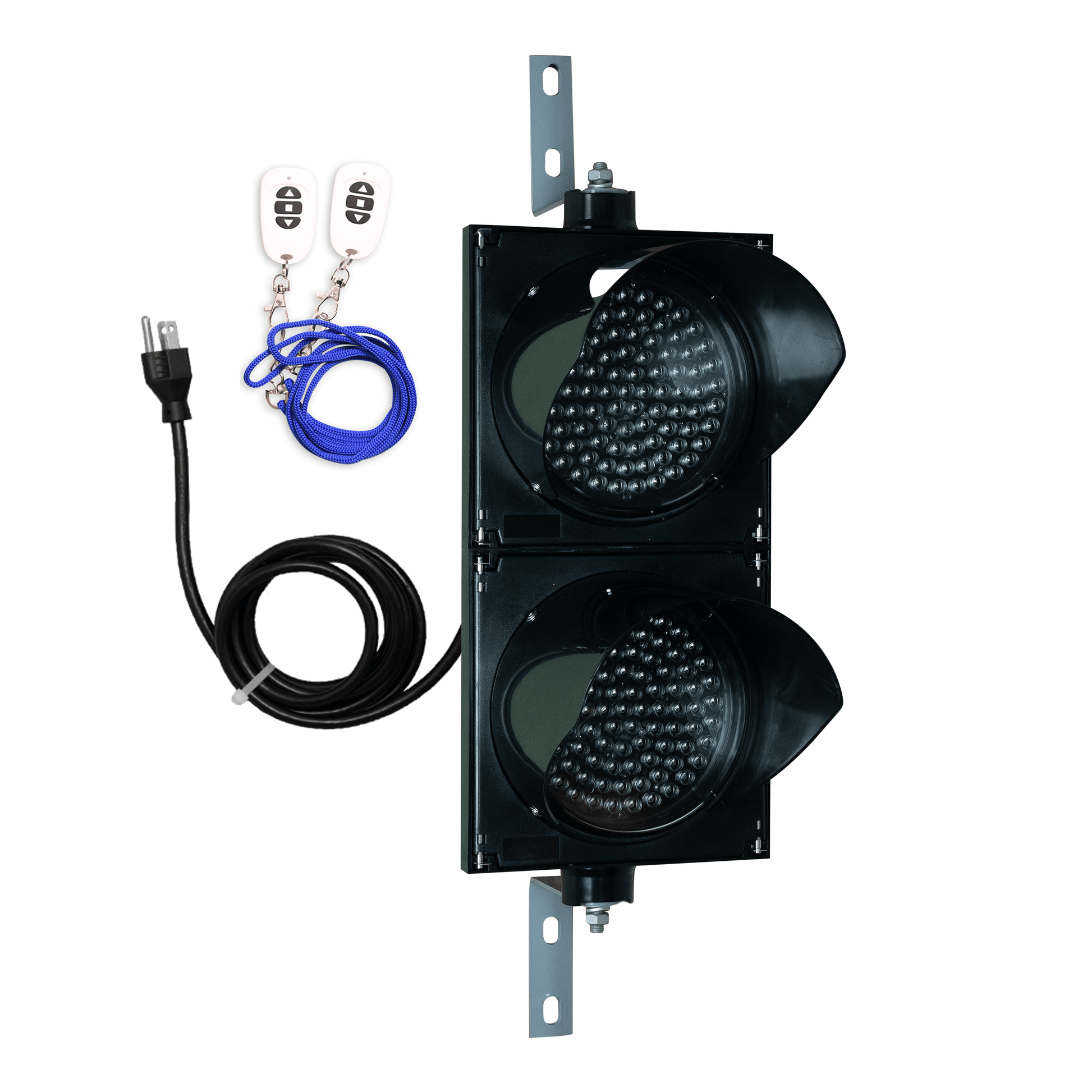 - Includes 8 inch diameter LED Traffic Light with both Red and Green LEDs in 2 lenses, 2 Right Angle Mounting Brackets